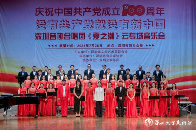 7月26日,為慶祝中國共產黨成立100周年,由深圳市文學藝術界聯(lián)合會主辦,深圳市音樂家協(xié)會承辦,深圳交響樂團協(xié)辦的“沒有共產黨就沒有新中國”——深圳音協(xié)合唱團“夏之潮”云專場音樂會在深圳市音樂家協(xié)會微信公眾號推出。