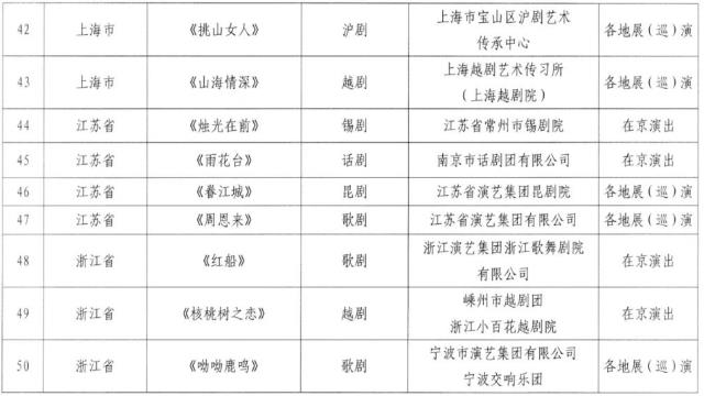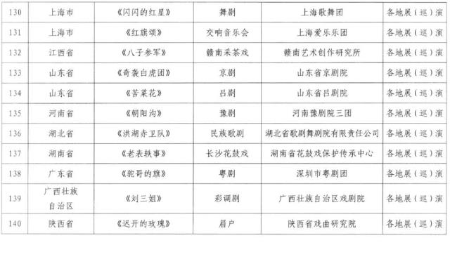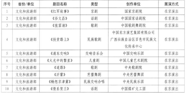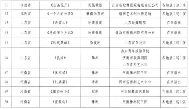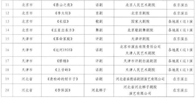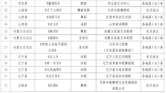 慶祝中國共產黨成立100周年優秀舞臺藝術作品展演參演作品名單