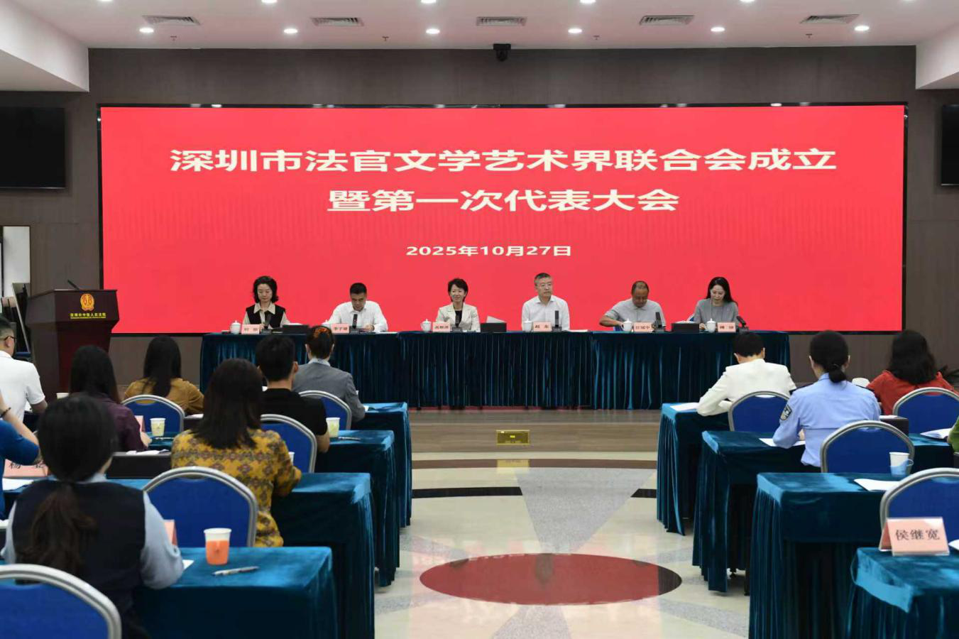2025-102025年10月27日下午,深圳市法官文學藝術界聯合會成立暨第一屆會員代表大會在深圳順利召開。市文聯黨組成員、專職副主席趙東,市中院黨組成員、政治部主任、機關黨委書記高順萍出席會議并講話,33名大會代表共同參會,見證深圳法治文化建設領域的重要時刻。