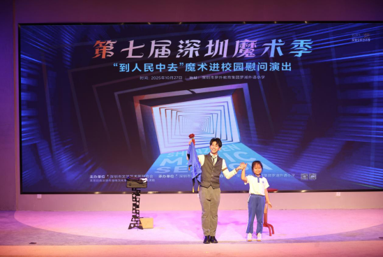 2025-11近日,由中國雜技家協會、深圳市文學藝術界聯合會主辦,廣東省雜技家協會支持,深圳市雜技家協會承辦的第七屆深圳魔術季組建隊伍,先后走進深圳各區的5所校園,開展“到人民中去”魔術進校園慰問演出,以一場場顛覆認知的魔術快閃拓展孩子們的思維邊界,讓滿載想象力的“魔法”賦予學生探索無限可能的力量。