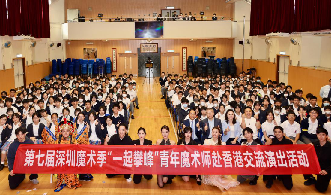 2025-11近日,“一起攀峰”深圳青年魔術師赴港交流演出活動走進香港管理專業協會羅桂祥中學。本次活動由深圳市文學藝術界聯合會、中共深圳市南山區委宣傳部主辦,深圳市雜技家協會、深圳市南山區文學藝術界聯合會承辦。