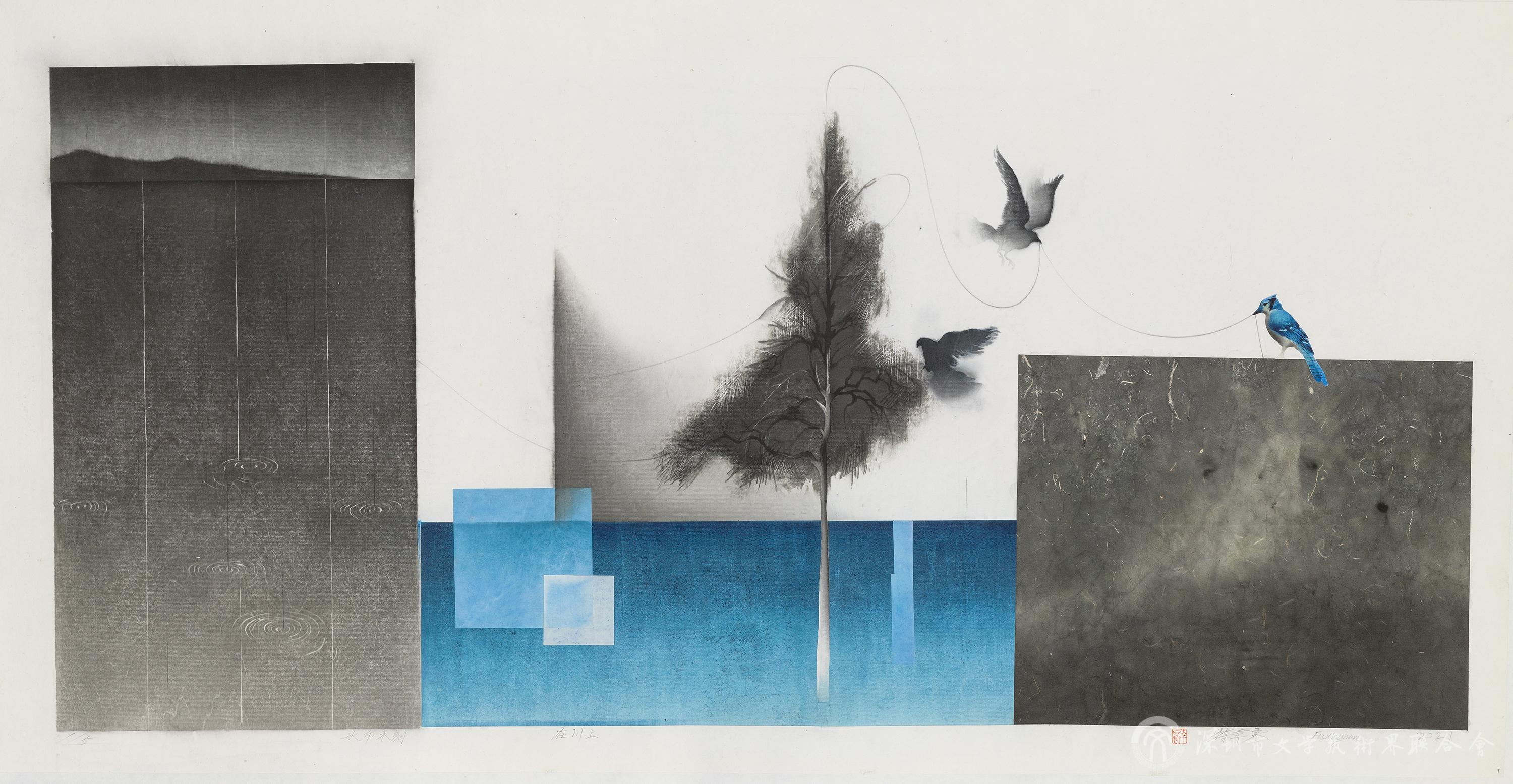 符幸寒《在川上》63cm×129cm 水印木刻 2021
