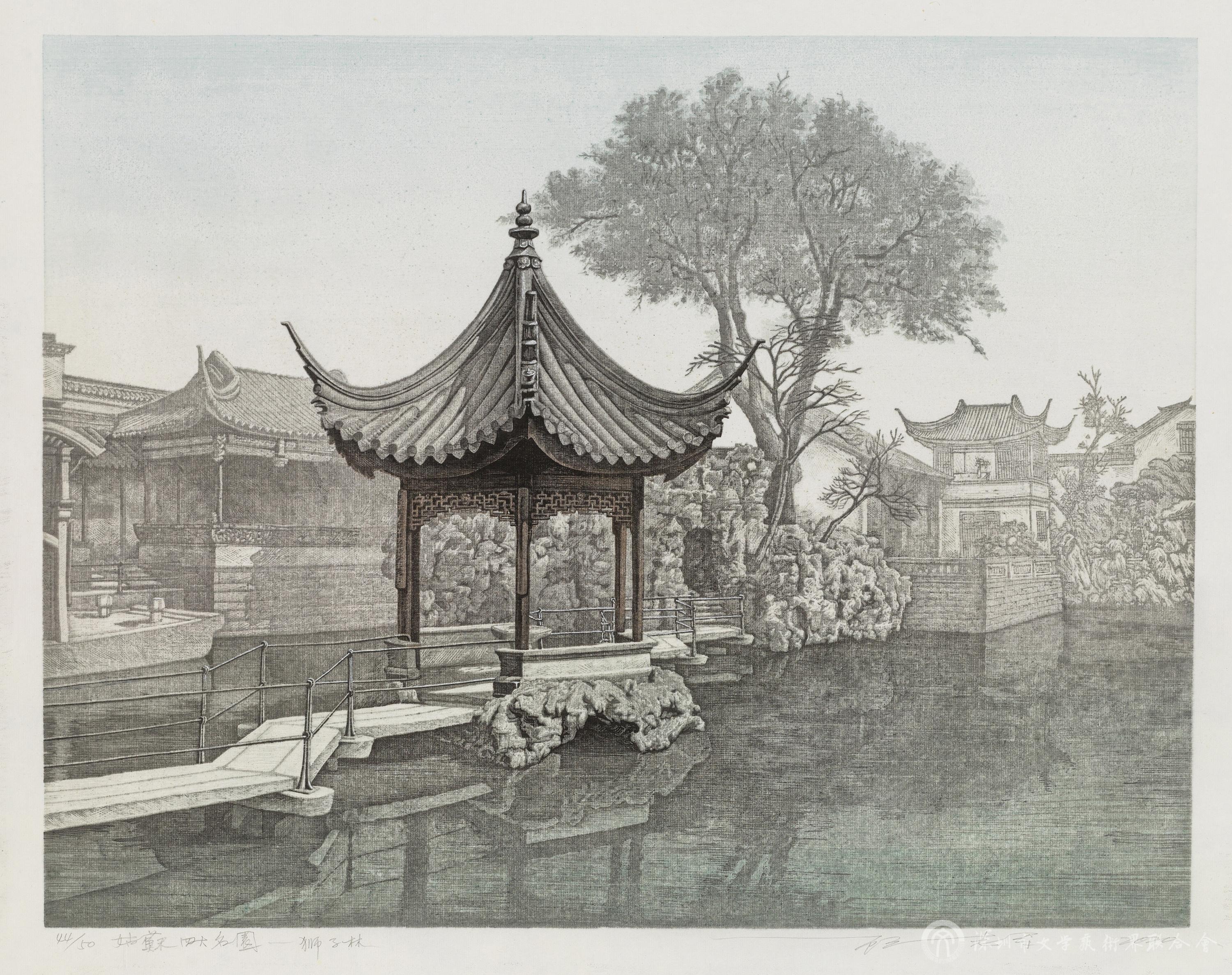 顧志軍《姑蘇四大名園之一——獅子林》45cm×58cm 水印木刻2020