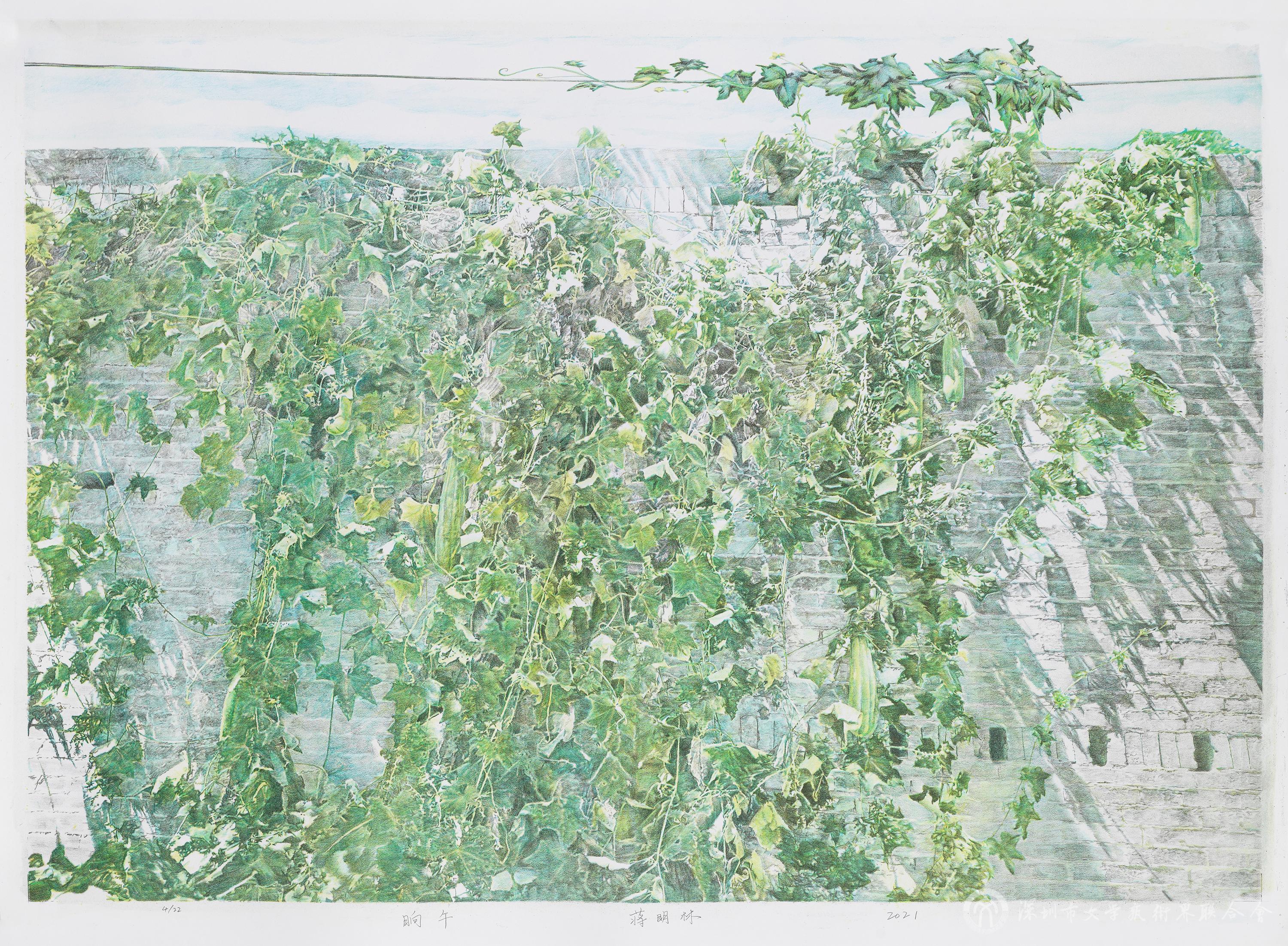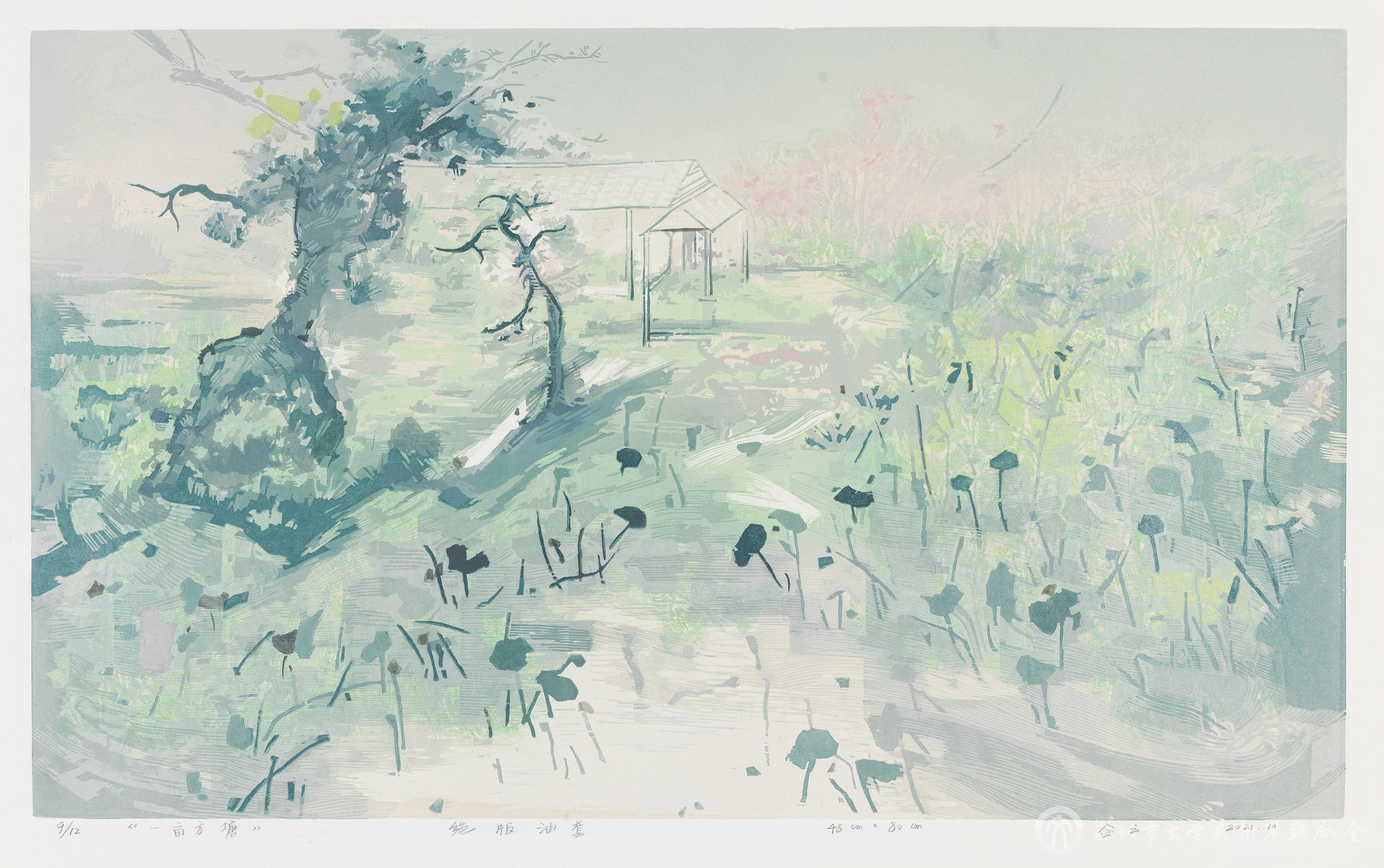 金云《一畝方塘》48cm×80cm 絕版油印套色木刻 2021