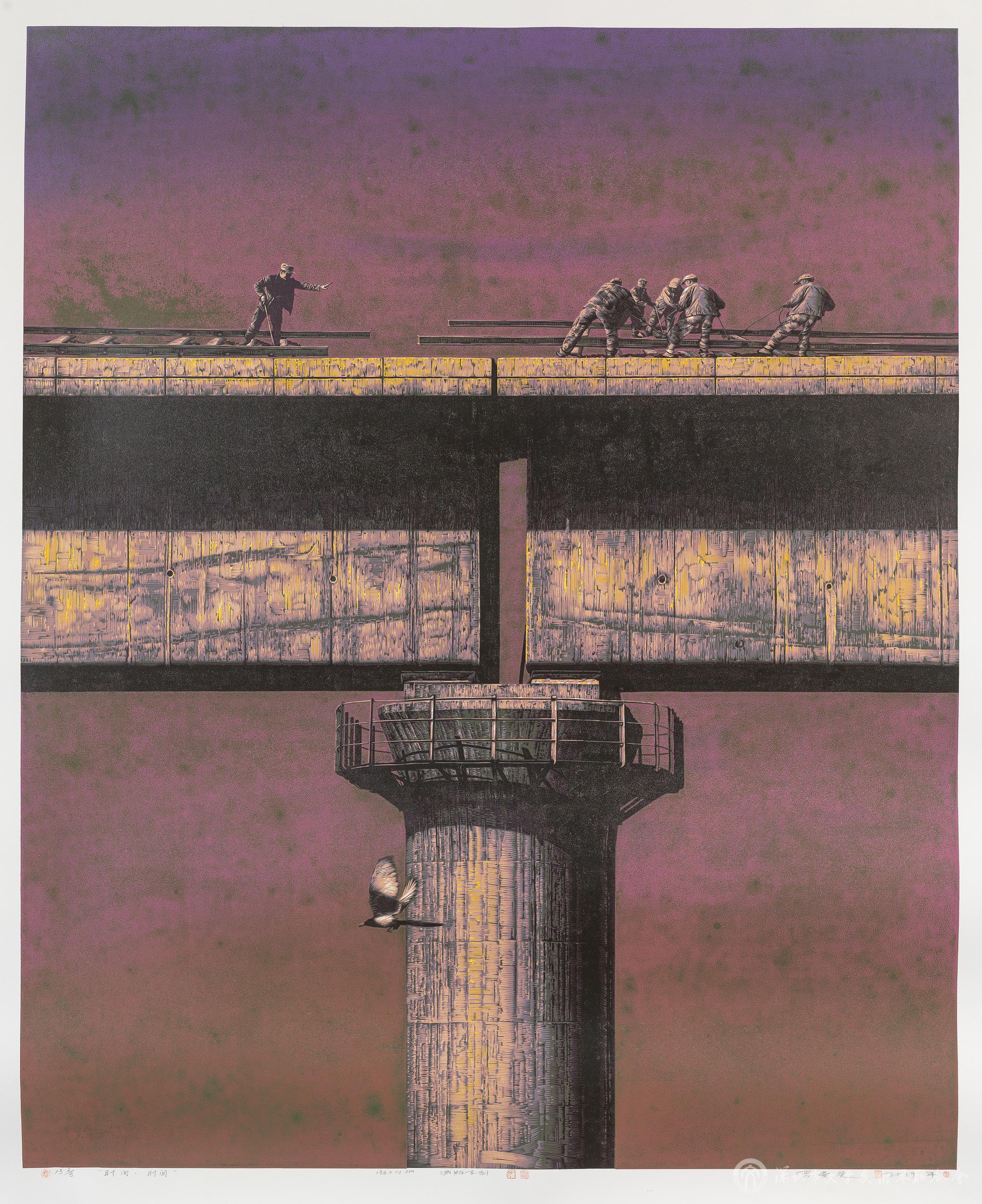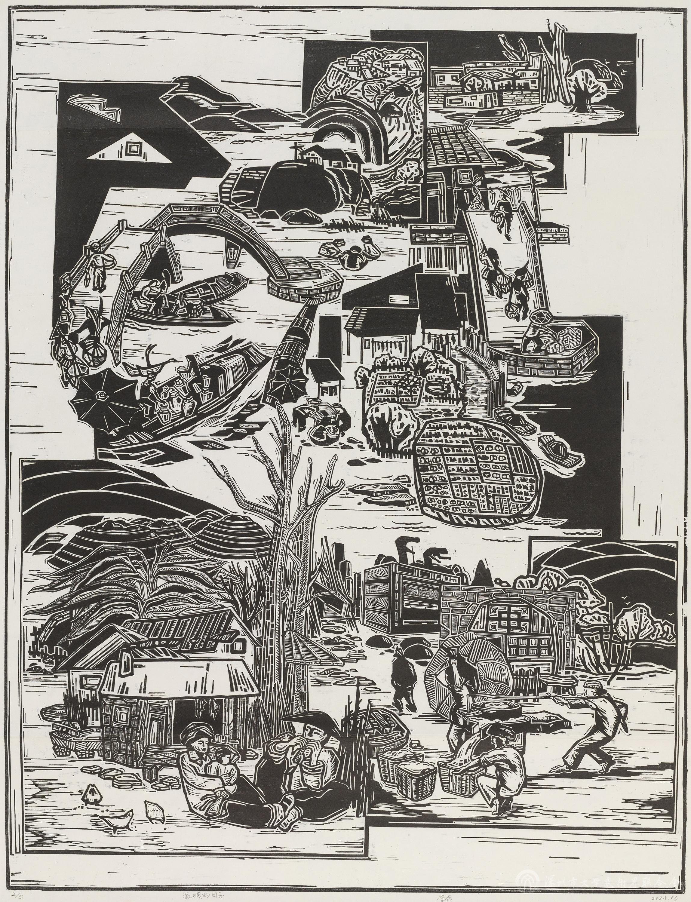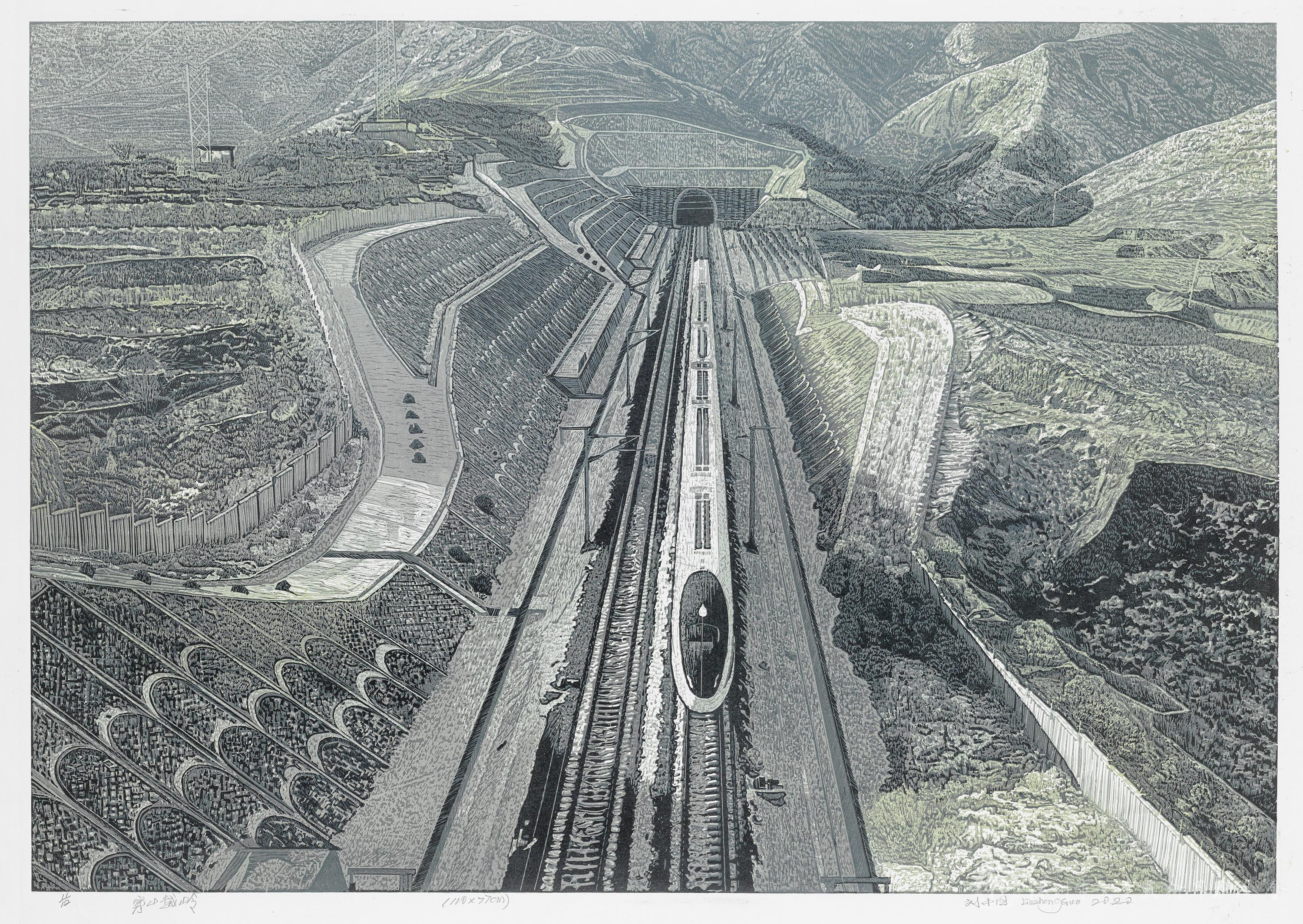 劉中國《穿山越嶺》77cm×110cm 套色木刻 2020