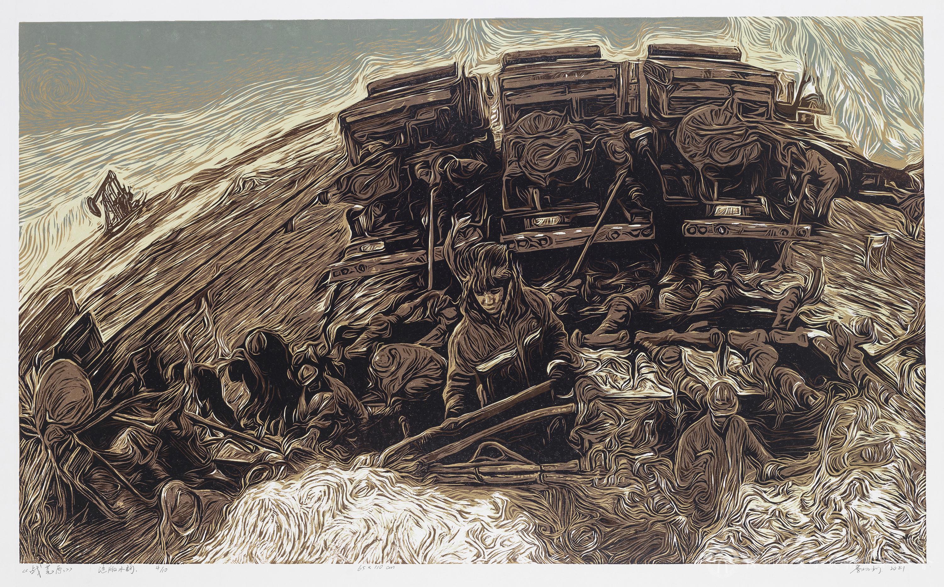 李雙剛《戰荒原》66cm×110cm 套色木刻 2021