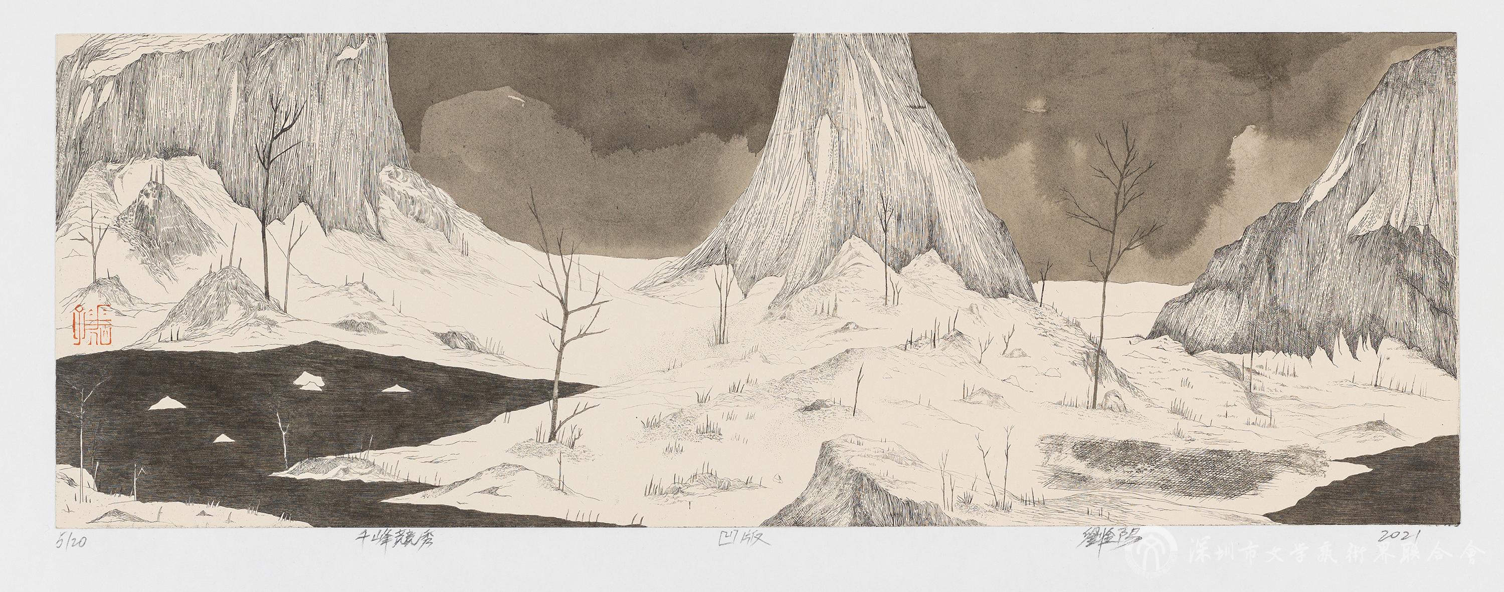 劉金陽《千峰競秀》20cm×100cm銅版 2021