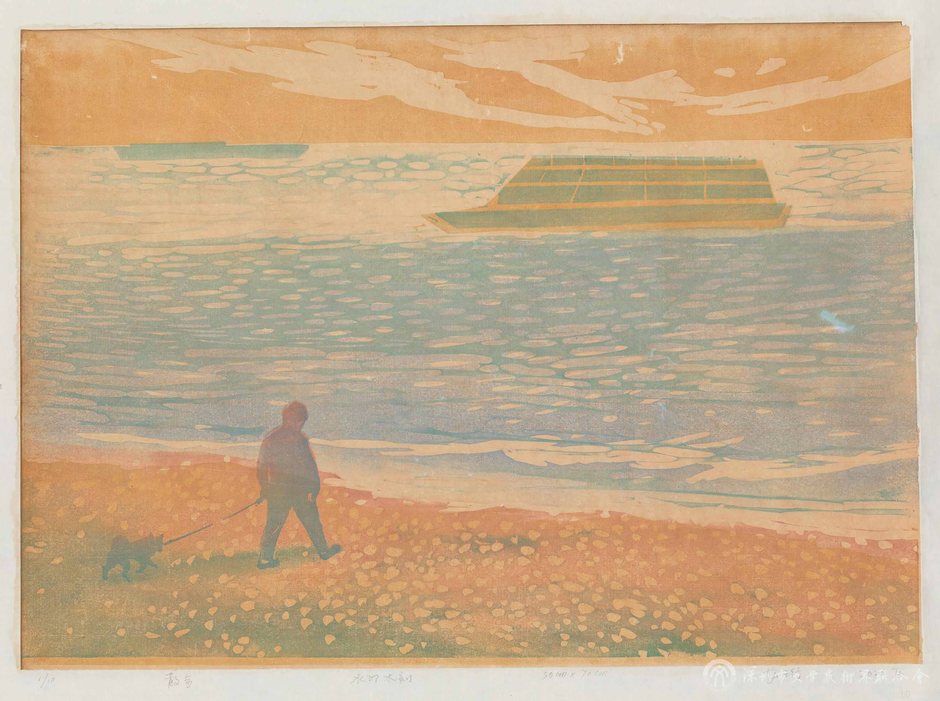 龍珩《散步》50cm×70cm 水印木刻 2022