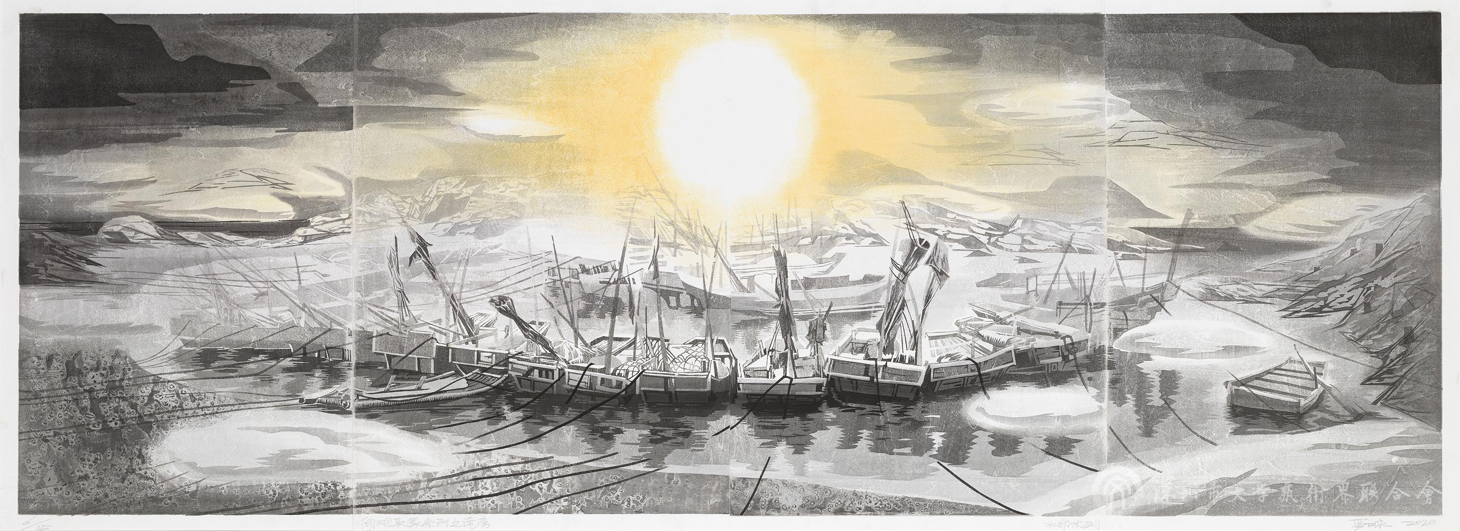 羅詠《港灣》60cm×170cm 水印木刻 2020