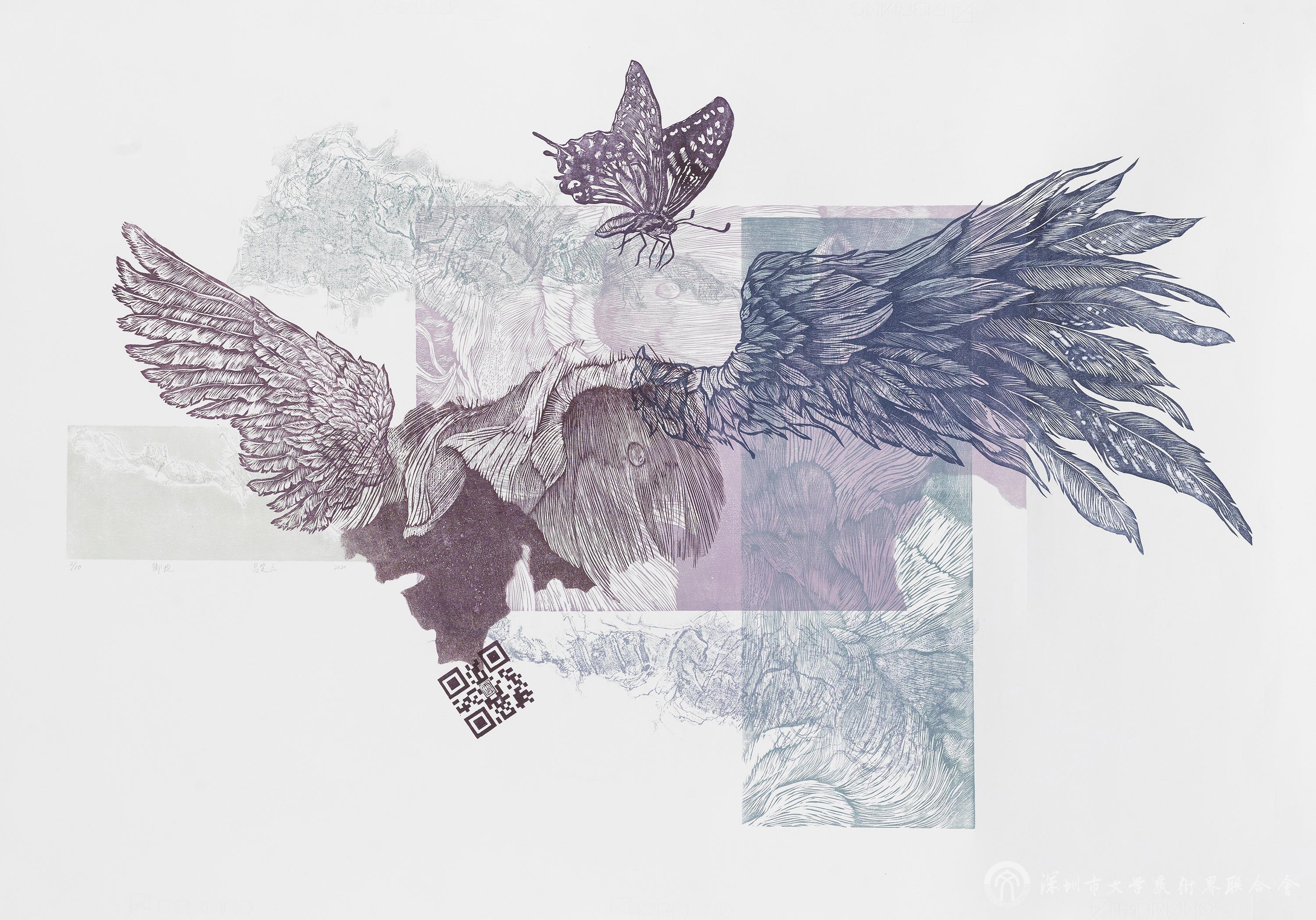 劉夢如《編碼時代二》50cm×70cm 木刻、捺印 2021