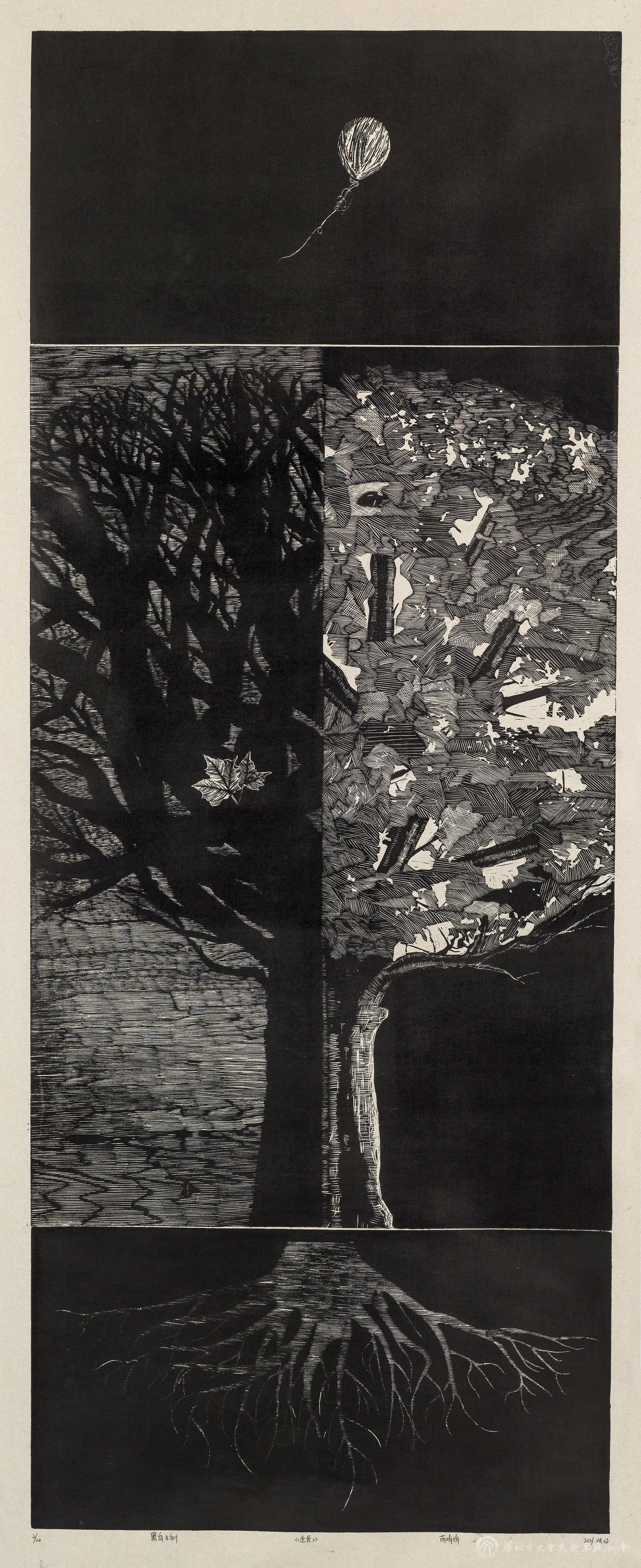芮婧婧《生長》黑白木刻 2021