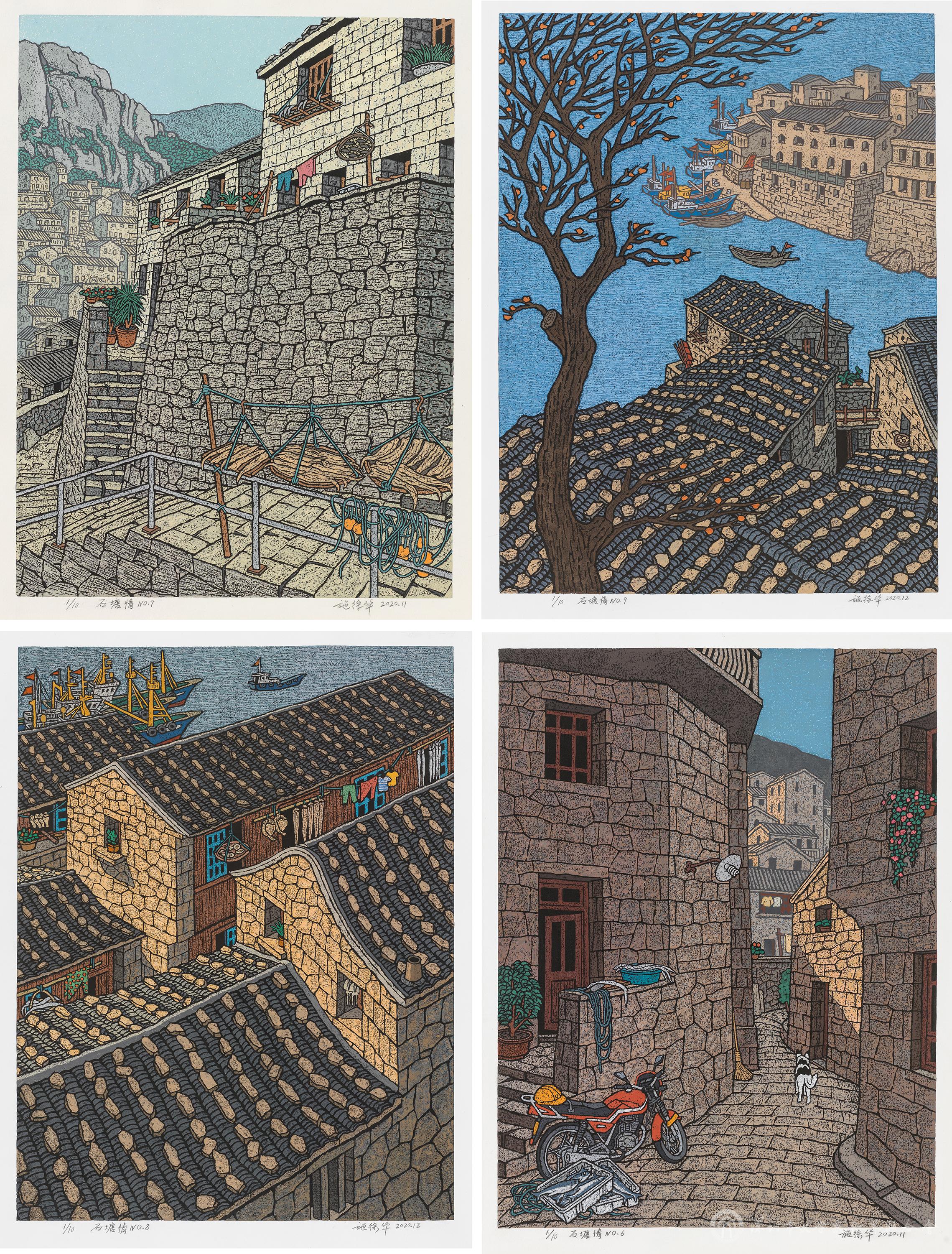 施徐華《石塘情》組畫60cm×45cm×4 木版粉印 2020