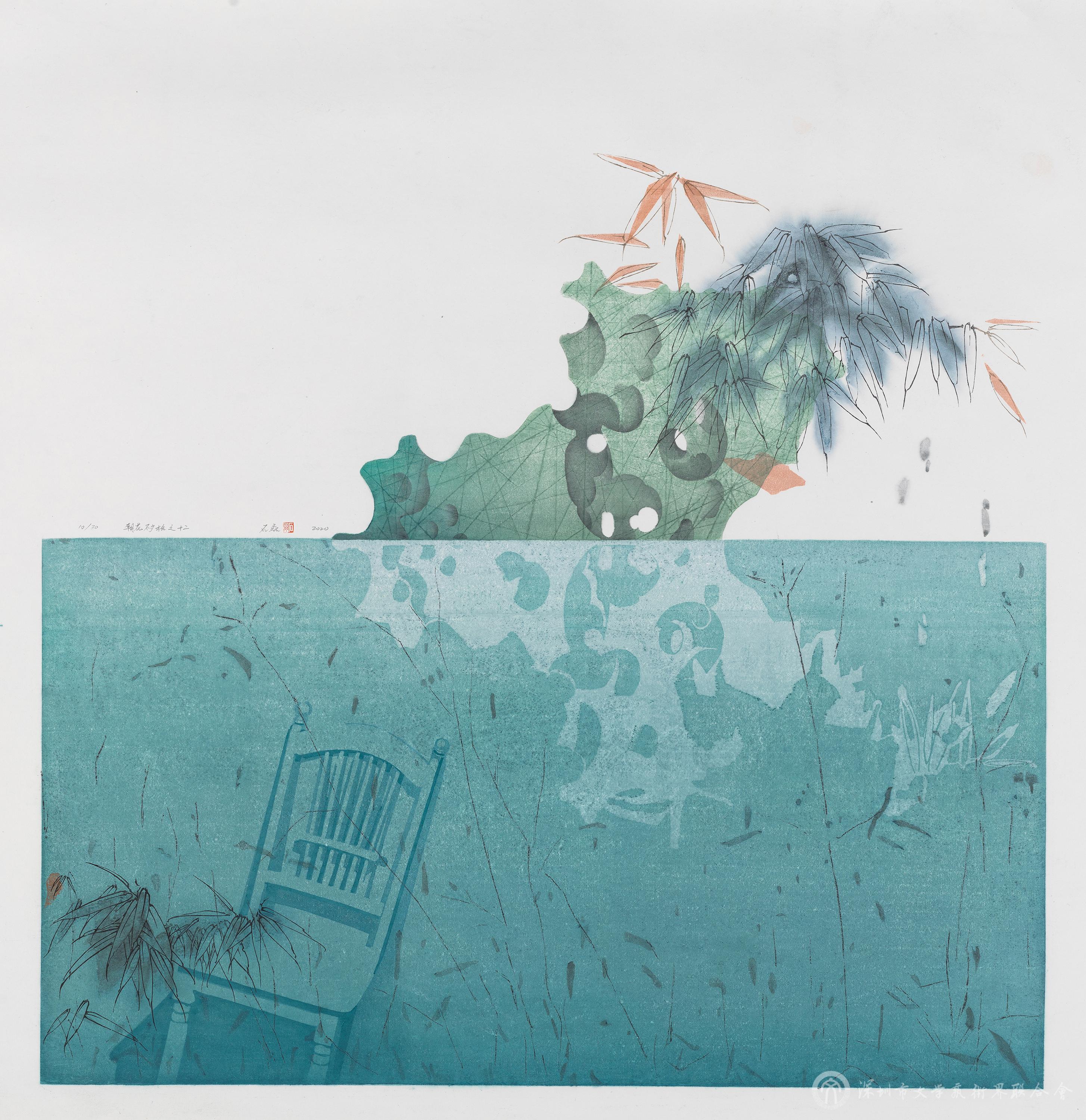 石磊《朝花不夕拾之十二》水印木刻 2021