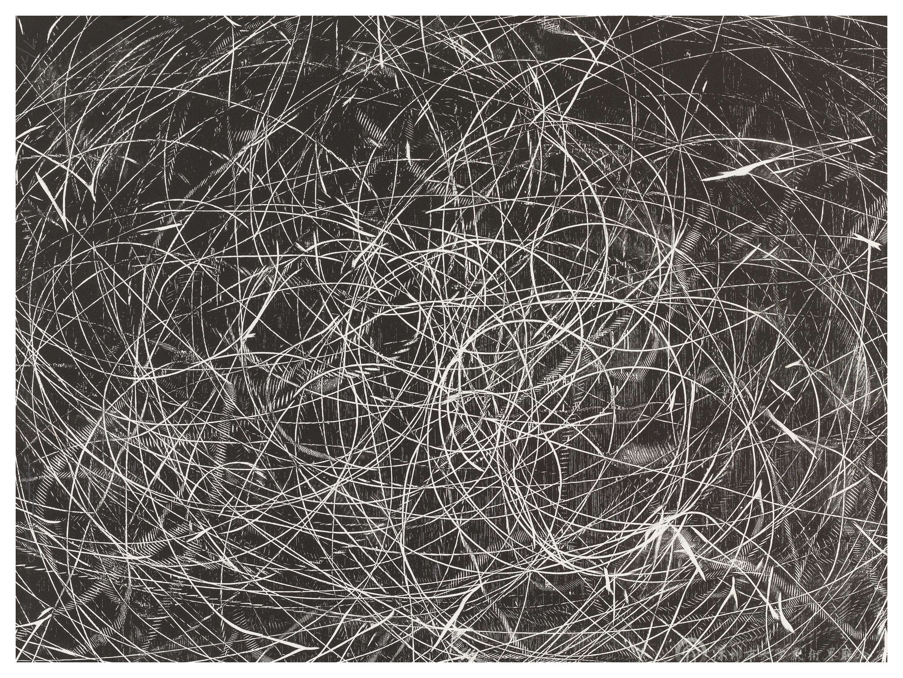 隋建國《時間與蟲洞4》油印木刻 2021