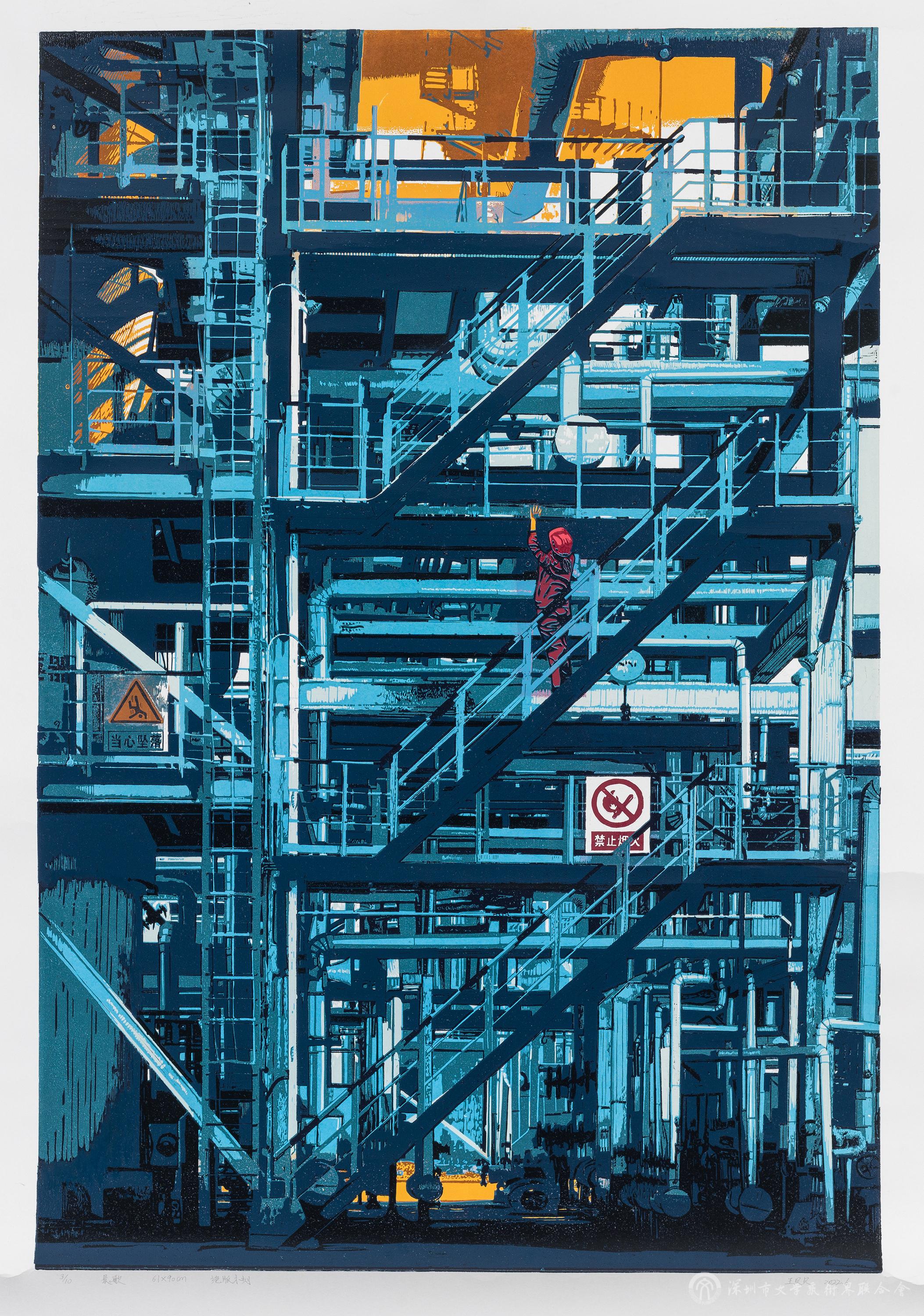 王洪君《溫暖的城市》水印木刻 2021