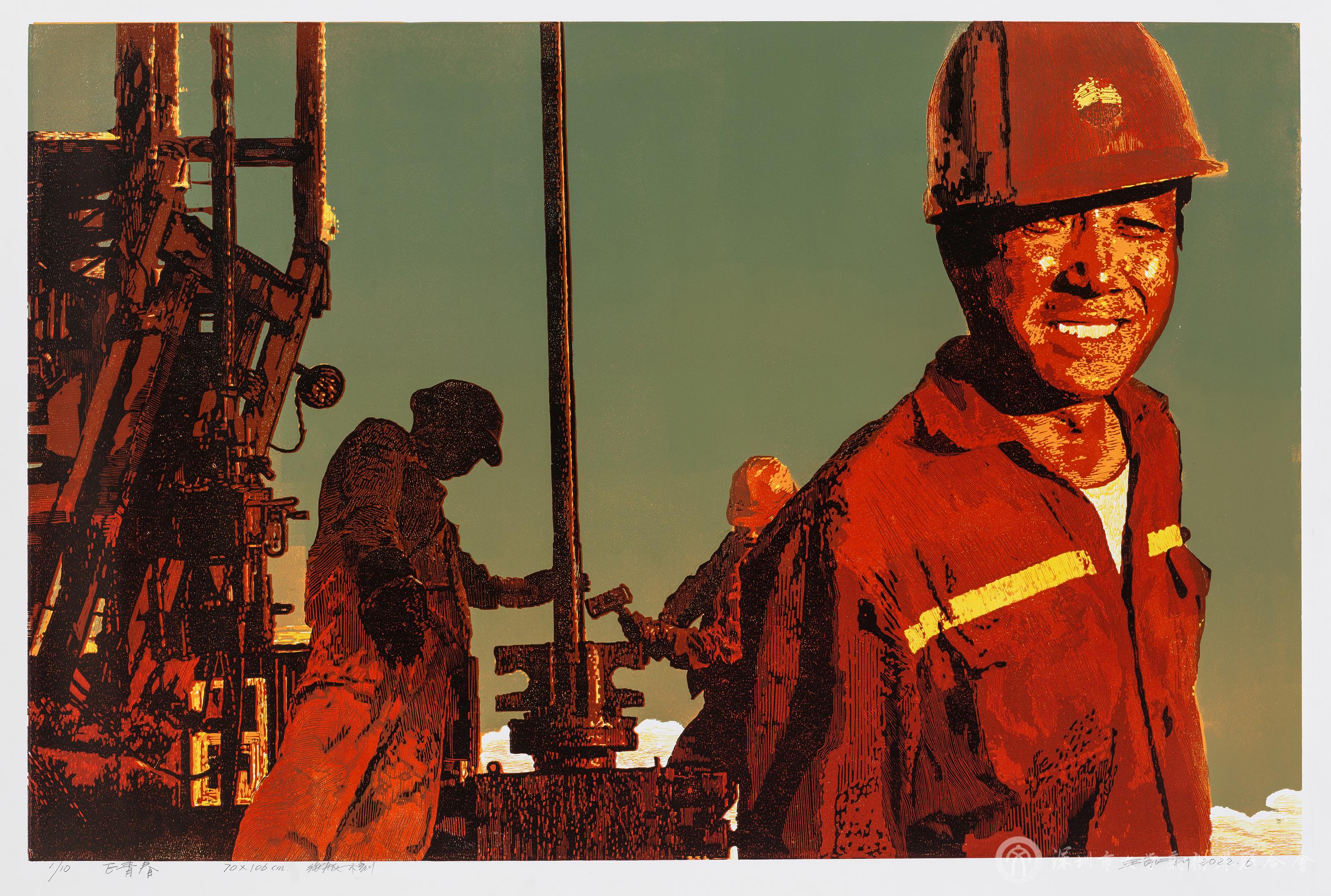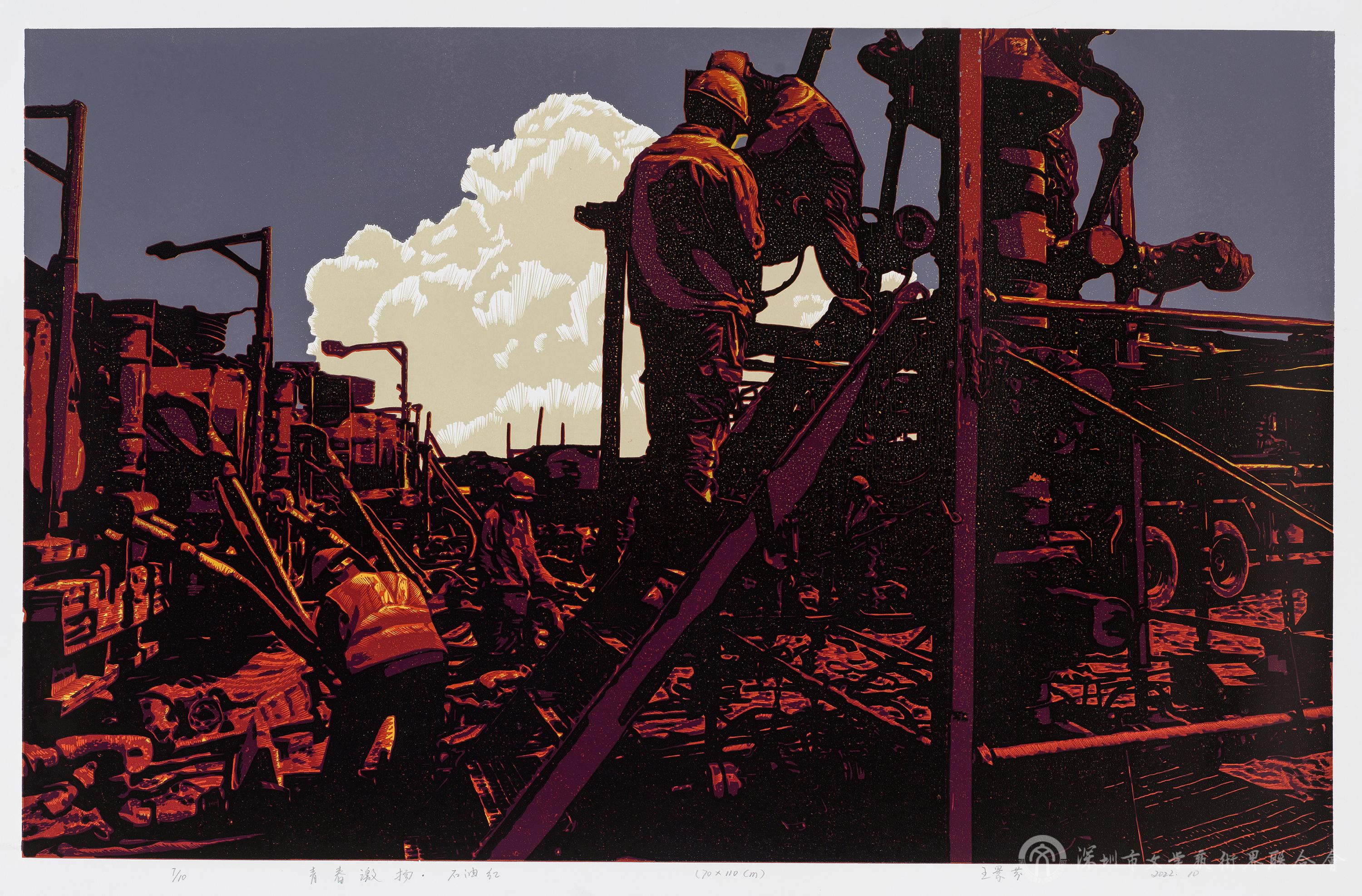 王景芬《青春激揚·石油紅》絕版套色木刻2022