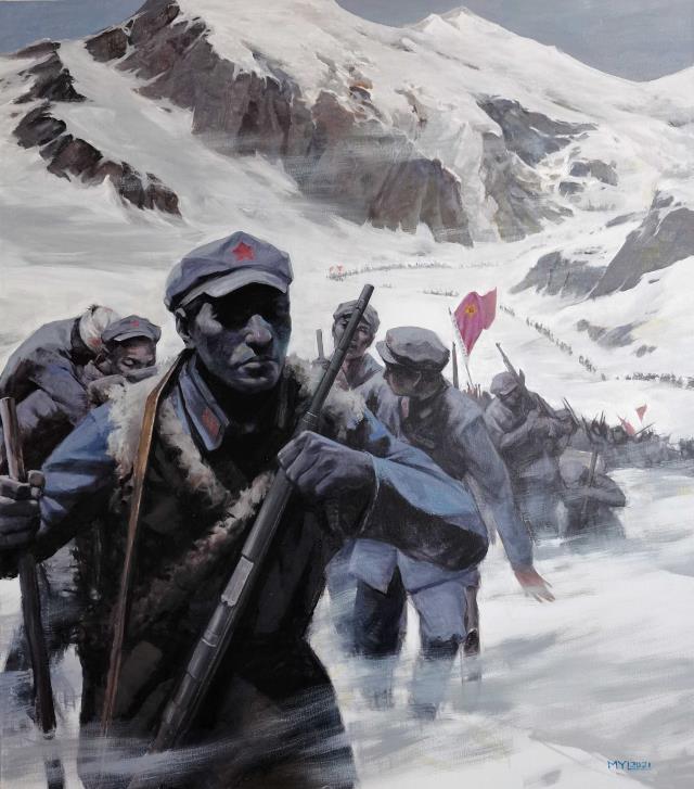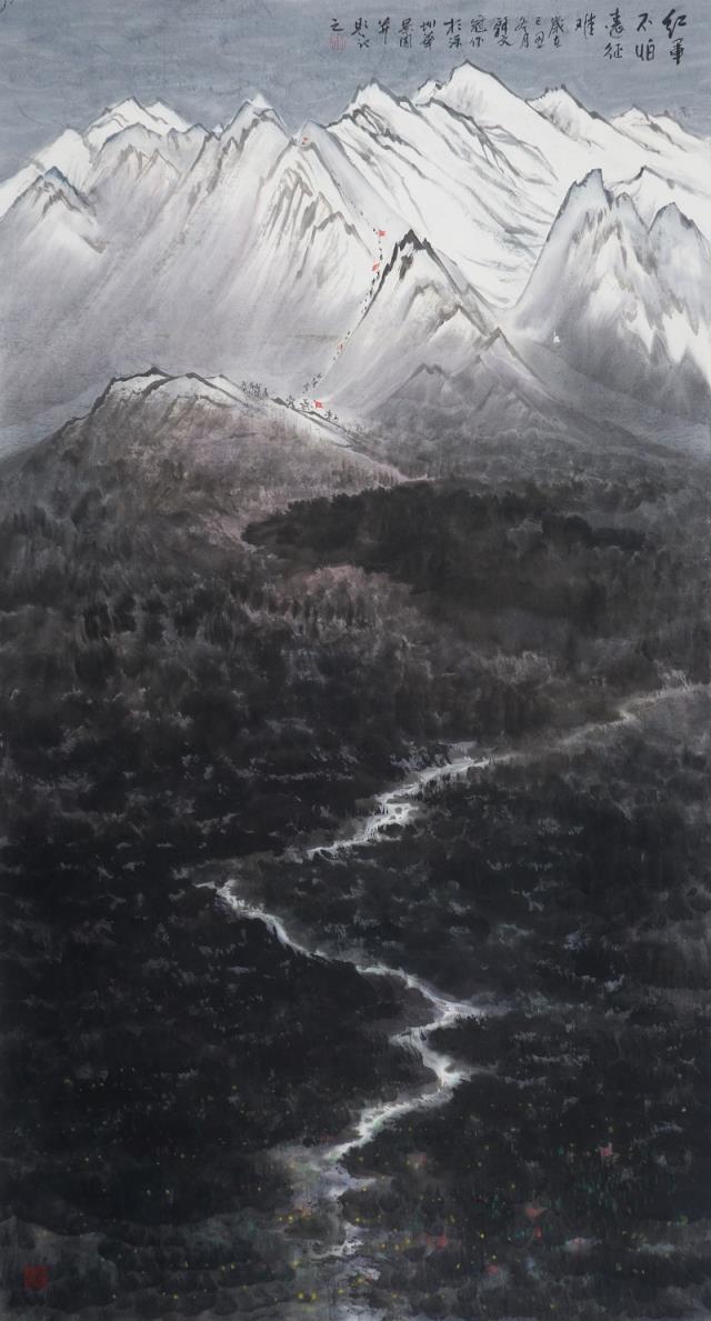 駱文冠《紅軍不怕遠征難》國畫 180x96cm2021