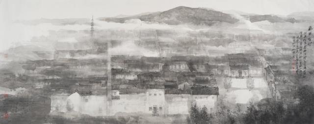 史文集 羅素民 《鳳凰古村》 國畫144x366 cm2020