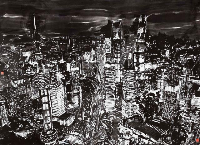 楊曉洋 《璀璨魔都》 國畫120×180cm2021
