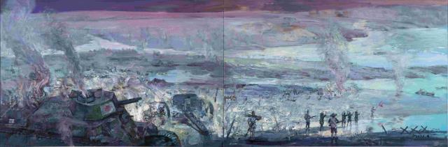 文禎非 《硝煙即將散去》油畫120x360cm2021