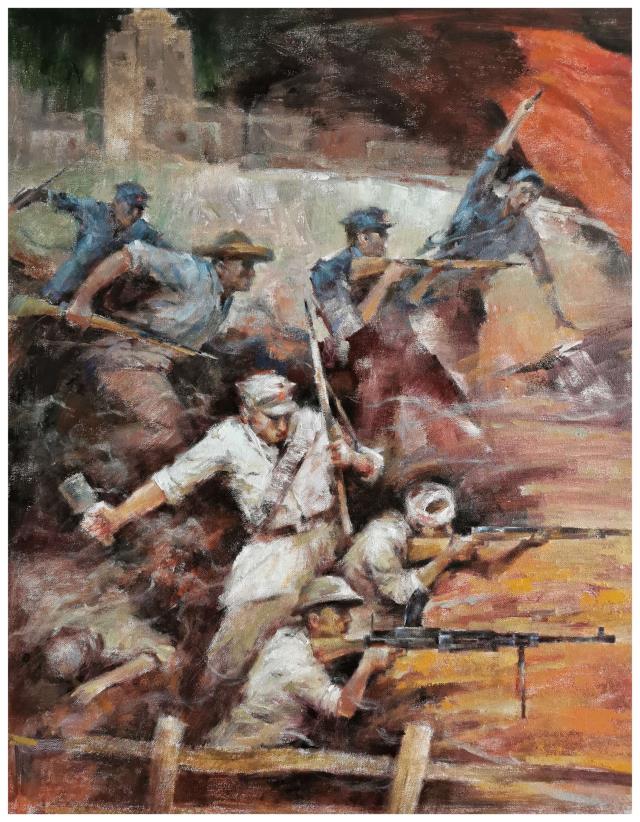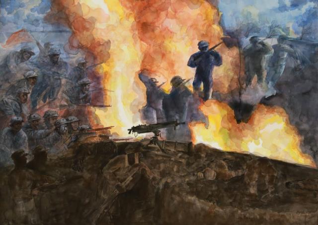 郝強《松毛嶺戰役》水彩110x95cm 2021