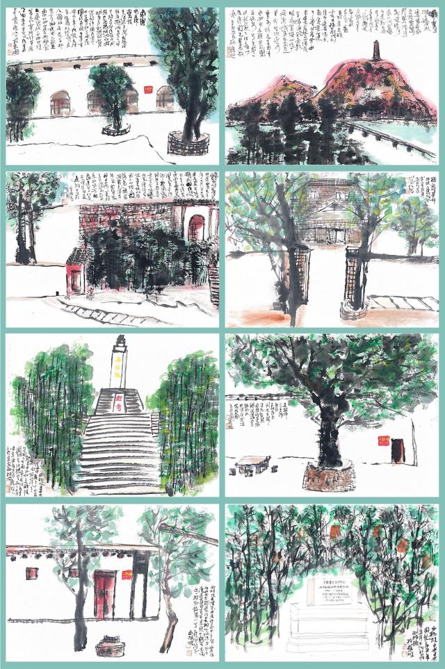 操應旺 《延安、西柏坡寫生組圖》紙本設色國畫35cmx46cmx8 2021