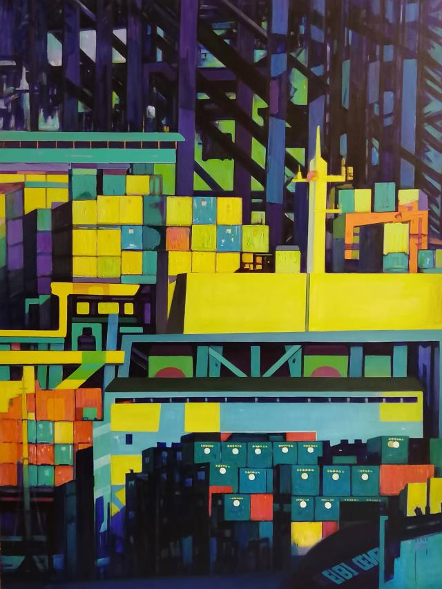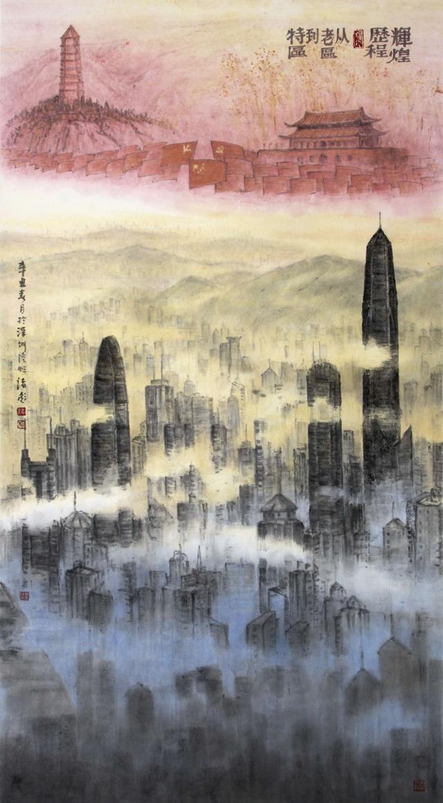 毛先萍 《不負韶華——大灣區繁忙印象之一》國畫190x189Cm2021
