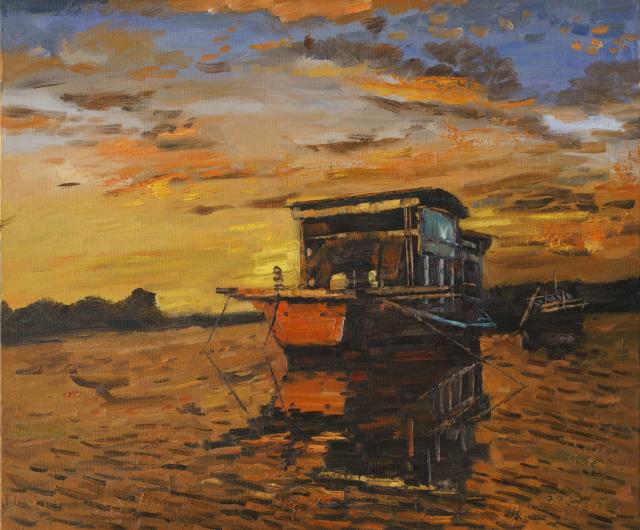 梁劍 《赤水河——太平古鎮》油畫30cmx40cmx4 2021