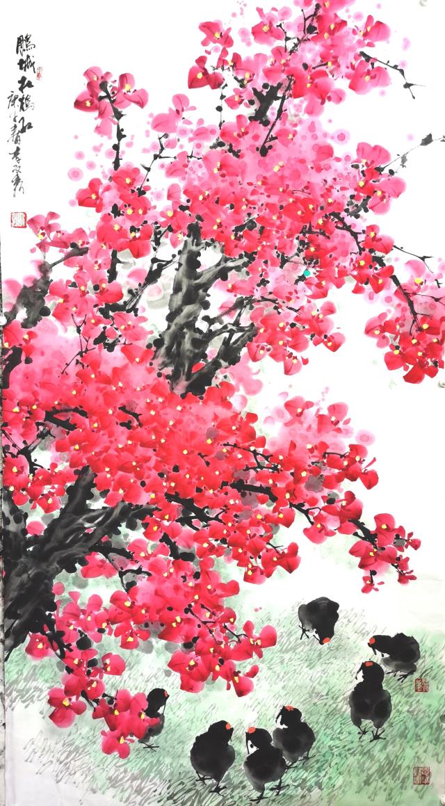 陳湘波 《鵬城杜鵑紅》國畫195X140CM2021