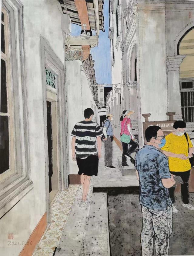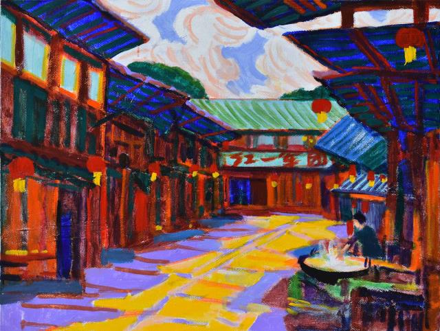 盧衛文 《正午—走過偉人故居》丙烯油畫80x100cm2021