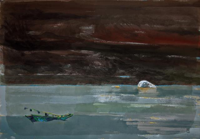 劉冰 《搶渡碣石灣》水彩54x78cm2021