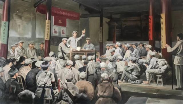 楊勃 《1929—古田會議(油畫草圖)》油畫105x60cm2021