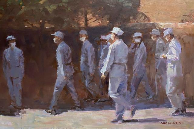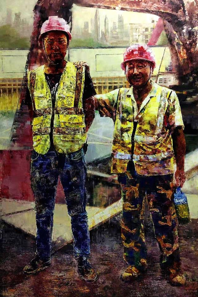 邱曉巖 《都市建設者·工友》油畫200x120cm2020