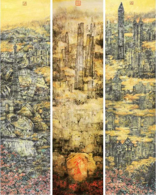 海巖 《鵬城-金色家園》國畫200x50x32021
