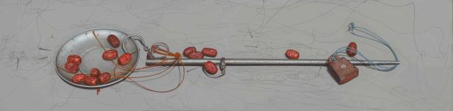 梁清遠“秤”系列作品之公平油畫30x120cm2019
