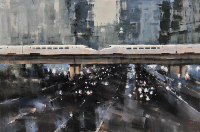 唐雪峰 《高鐵時代》油畫150x100cm2020