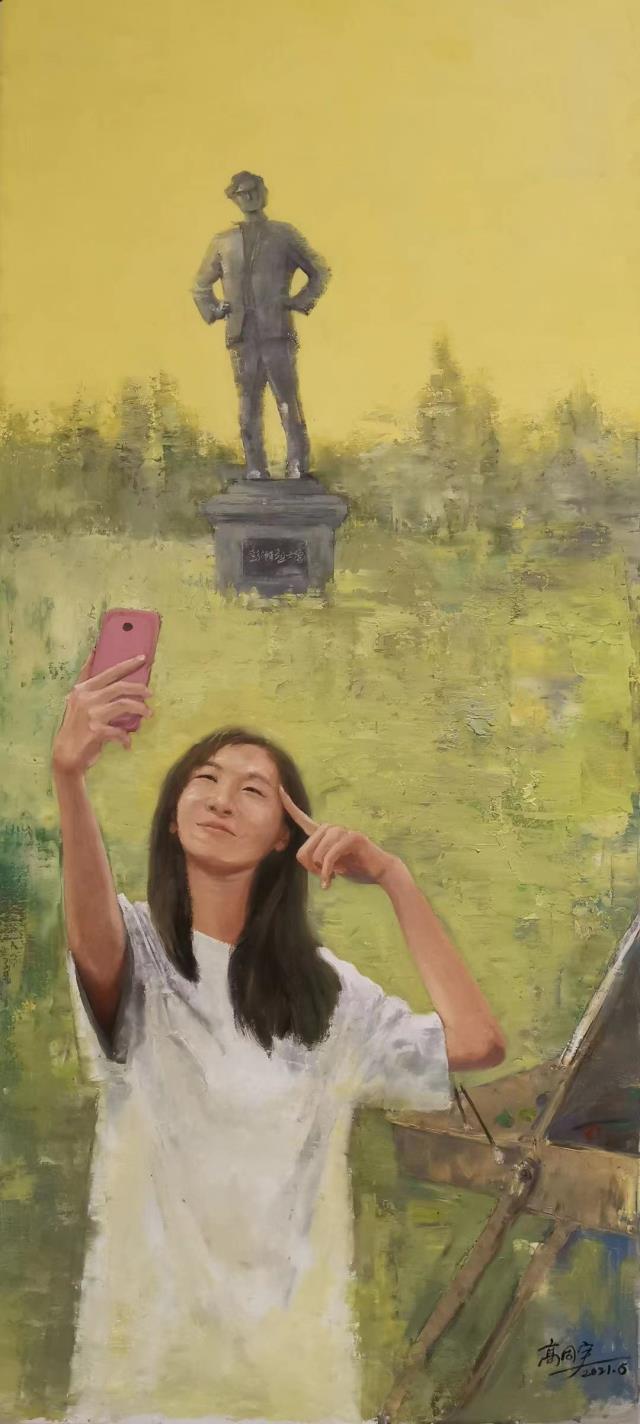 高同宇 《海陸豐采風~與英雄同框》油畫135x60cm2021