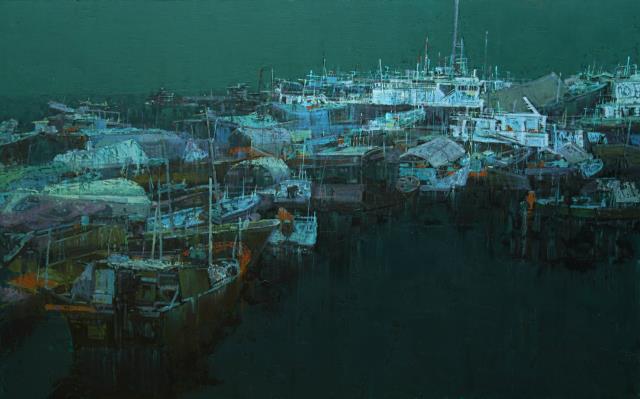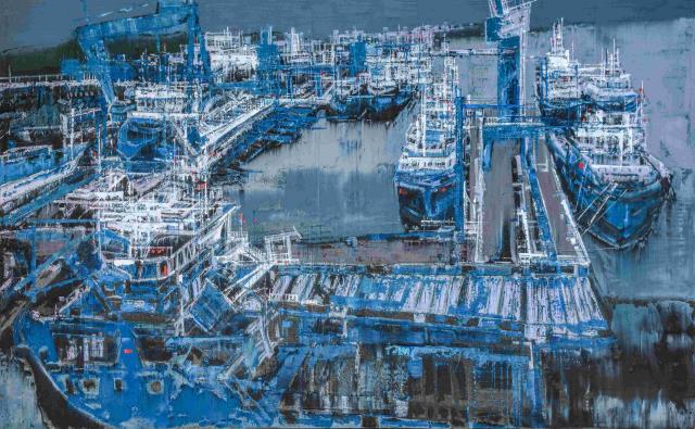 周利群 《喧騰的港灣》 水彩140x100cm2019